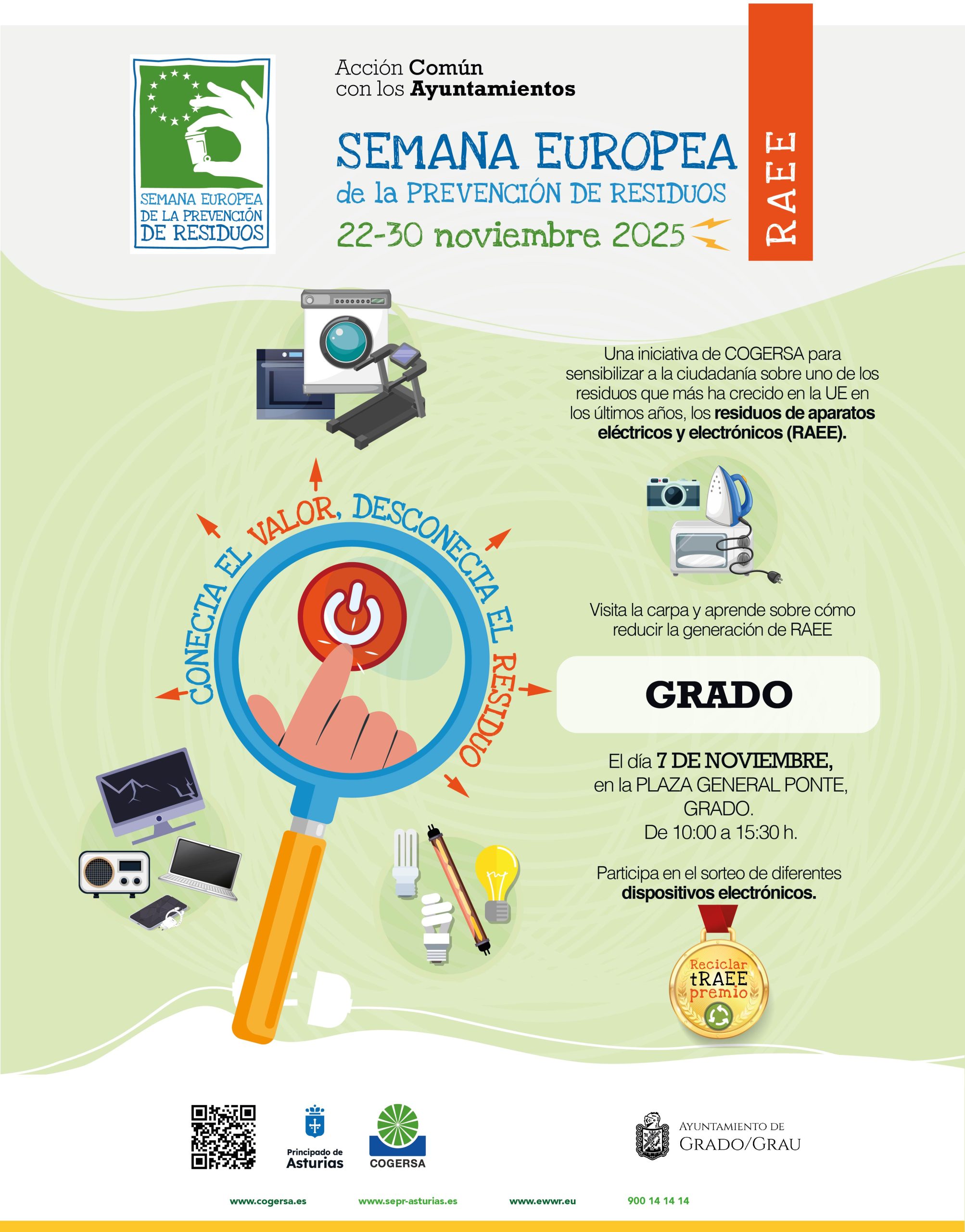La campaña “Conecta el valor, desconecta el residuo” llega a Grado para concienciar acerca de los residuos de aparatos eléctricos y electrónicos (RAEE).
